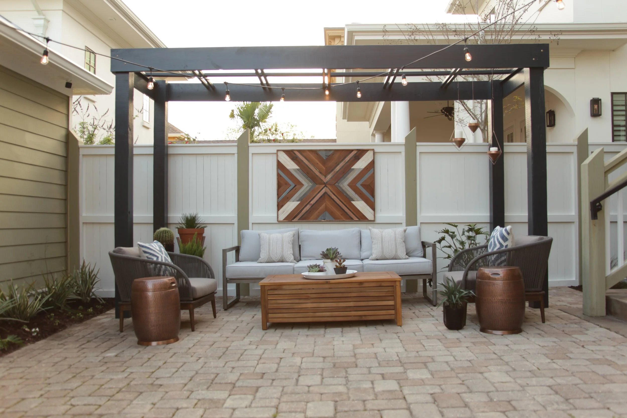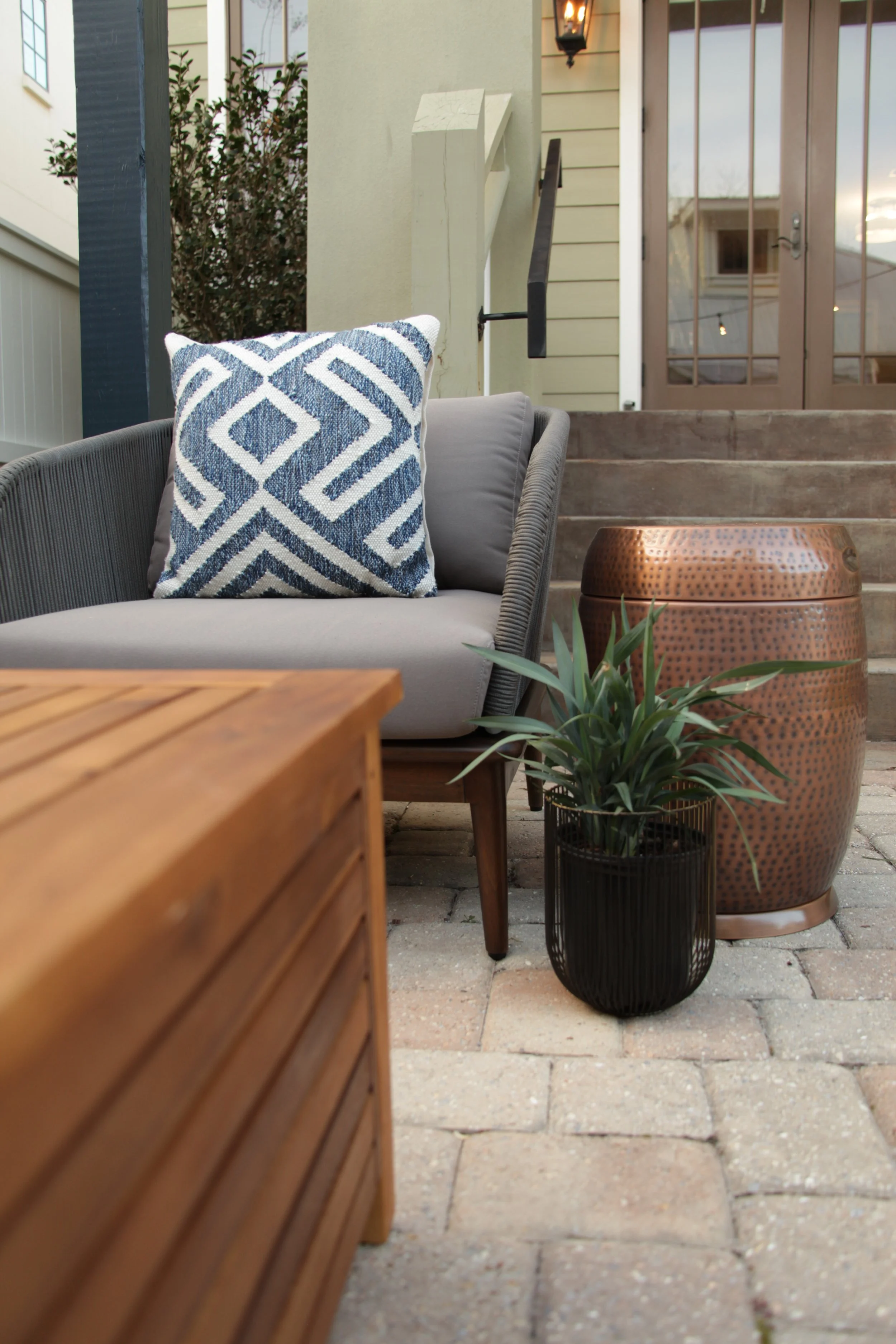 We styled this outdoor living space for entertaining, but even when it’s not in use, the client loves seeing it from their interior spaces.